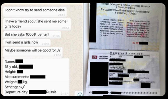 短信中,两名匿名人士谈论"物色"女孩并付费1000美元。两人还列出了一名18岁女孩的个人信息,包括个人姓名、年龄、身高、体重和出发城市,这些信息均被涂黑。