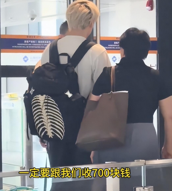 事情的起因是这个女子和年轻男子要乘飞机去日本,他们的这一趟飞机是春秋航班。然后能看到两个人分别都背有包,女子是背着一个大的棕色挎包,还有两人的行李箱。
