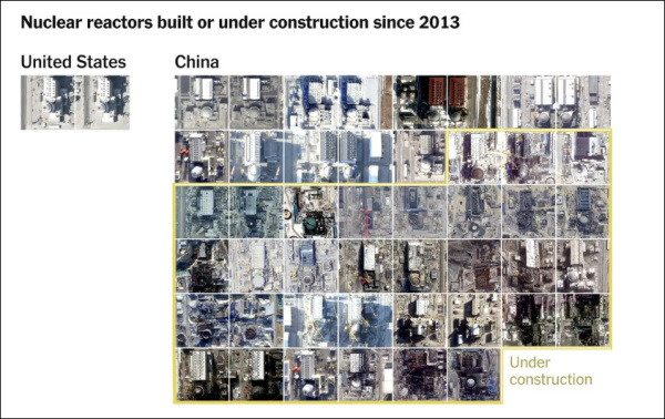 自2013年以来,美国仅新建了两座核反应堆,同期中国建成13座,另有33座正在建设中。 《纽约时报》