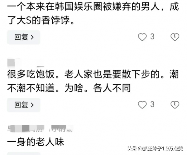也有网友表示,具俊晔离开大S以后直接变年轻了,看着精气神十足,不过还是一股老人味。