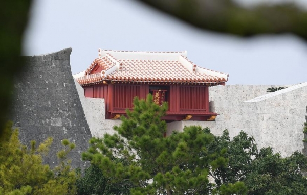 日本冲绳县那霸市的琉球王国都城遗址首里城城门