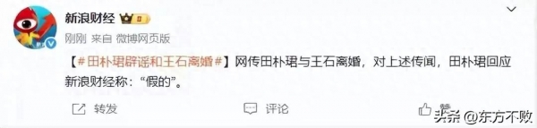 谣言传得越来越凶,终于有媒体忍不住去问田朴珺了。面对"离婚"这个说法,田朴珺跟新浪财经回应得特别干脆,就俩字:"假的"。