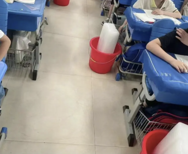 成都一学校用冰块给教室降温