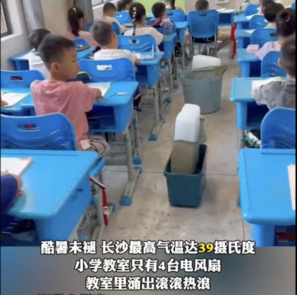 酷暑未褪,长沙最高气温达39摄氏度。9月2日,该小学部分学生反映天气太热头晕、想吐。因学校每间教室仅有4台风扇,未安装空调,家委会想出"冰块降温"的方式解暑。