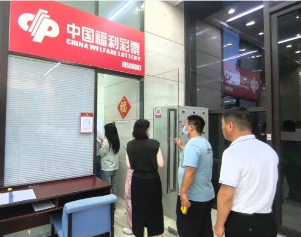 观摩团在中国福利彩票发行管理中心一楼买彩票