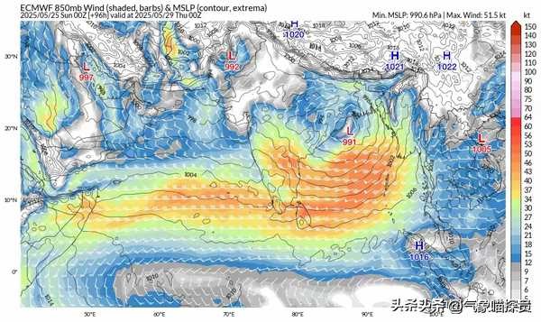 眼下虽然整个西北太平洋和南海都风平浪静,但这一切都即将迎来改变。多家超级计算机给出的趋势完全一致,指出在5月28日左右西南季风彻底爆发后,台风的生成条件基本上能够彻底满足。在6月上旬极有可能会生成一个或者多个台风,对于未来10日的热带气旋生成概率超级计算机给到了最高级别的90%~100%。强度预测方面上给出的数值也是相当高,无论是EC还是GFS基本上都给到了台风级以及强台风级的强度,GFS甚至给出了2~3条超强台风级的台风线。根据目前的结果判定来看最终生成位置应该是菲律宾以东近海或者是南海一带。