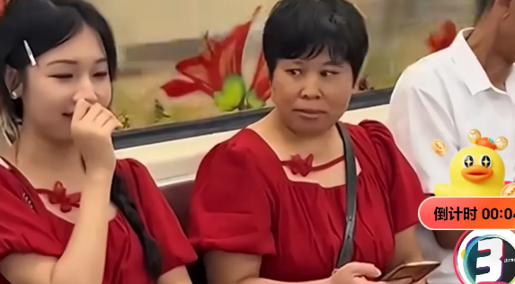 女子想不到她花了1000元买的裙子,竟然在地铁上和别人撞衫了。撞衫的还是一位大妈,还和她挨着一起坐的大妈,女子尴尬了,忍不住笑了。