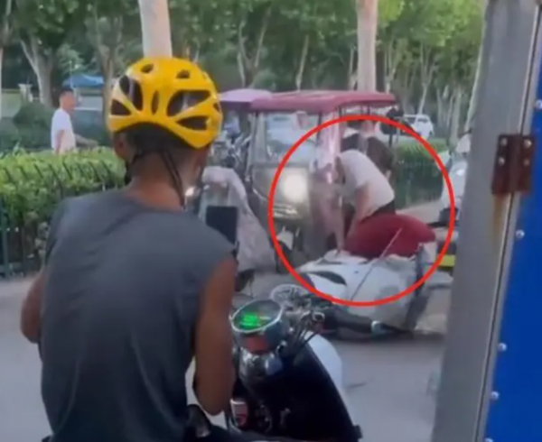 这个画面仿佛似曾相识,很多人都联想到了路虎女事件,这名红衣女子的举动,也引起了路人的注意。