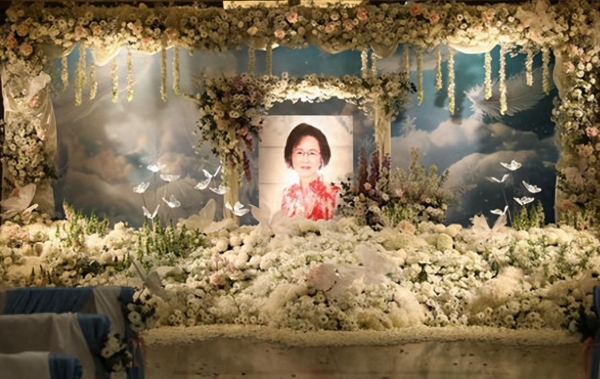 白色棺木与缤纷的鲜花相互映衬,形成了一幅既凄美又令人动容的画面。每一朵鲜花都像是家属们无声的倾诉,寄托着他们对琼瑶的无尽思念和祝福。