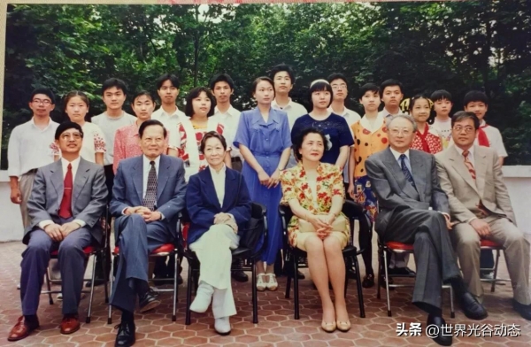 图为1995年6月10日,杨振宁在我校为湖北省首届"亿利达青少年发明奖"获奖者颁奖后与大家合影留念。