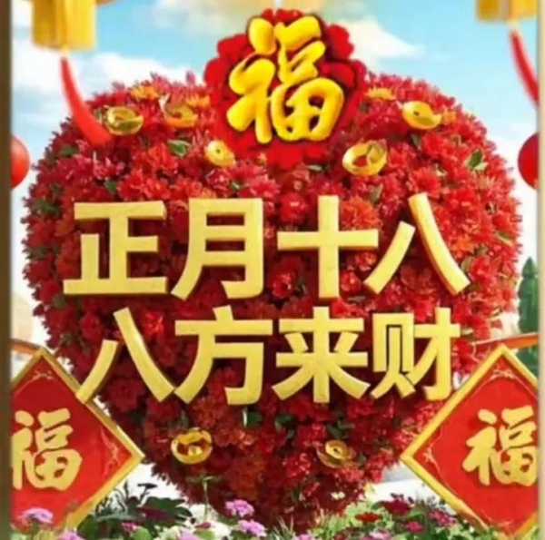 正月十八,愿你:人安、家安、事事安,财来、福来、好运来!