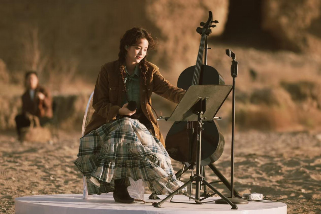 在这个篇章里,欧阳娜娜带着他的大提琴第一次在户外音乐演出上现场演奏古典国风音乐,西方乐器与中华民族的音乐交融,在大漠里奏响,风声和流水成为了最动听的和声。