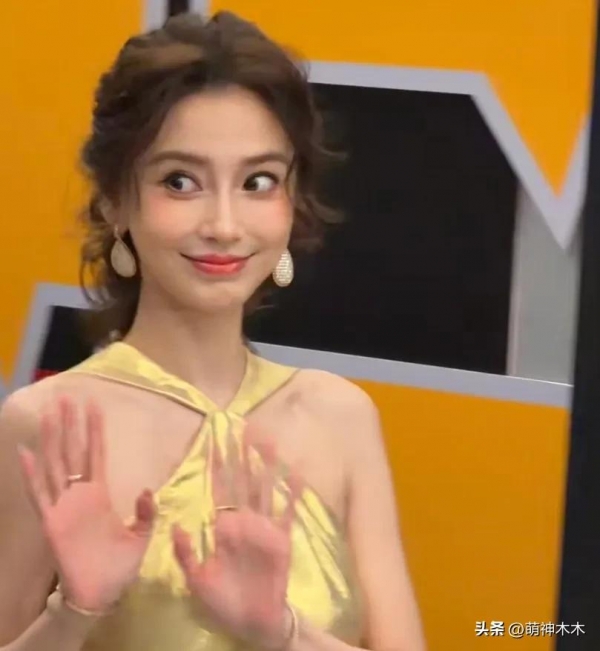 走上红毯的baby,听到有人和她打招呼,立马挤出笑容、瞪大眼睛回应,整个表情都不自然了;