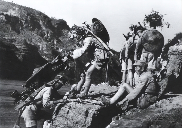 拿着刺刀的彭长竹冲锋在前,不顾一切的奋勇杀敌,为了帮助战友解围,彭长竹左刺右挑,放倒了好几名日本鬼子。