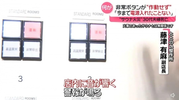 正常情况下,紧急按钮一旦被按,店里会响起刺耳的警报声。同时,主控板会显示哪个桑拿间出事。