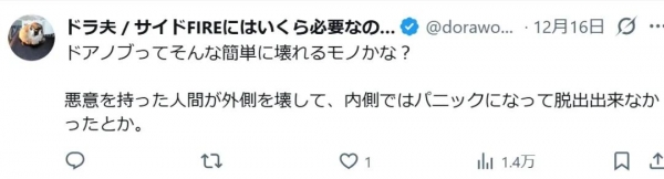 怀有恶意的人从外面弄坏门把手,里面的人惊慌失措,没能逃脱出来啥的。