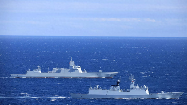 中国海军船南海组织海空联合演训