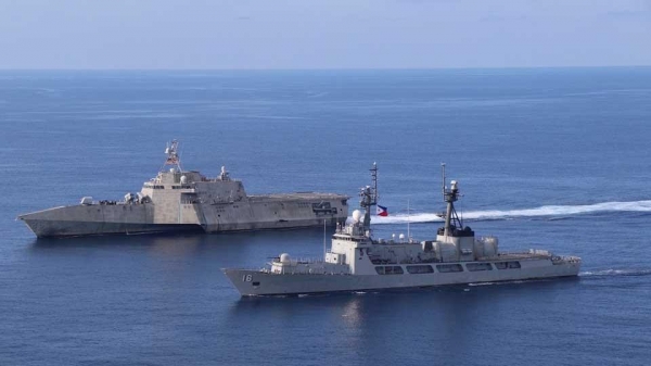 美国和菲律宾海军军舰在南海进行联合演习