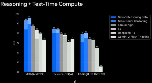 推理能力方面,具备推理能力的Grok-3 Reasoning Beta和Grok-3 mini Reasoning也超越了DeepSeek-R1和OpenAI的o3 mini等的推理模型。