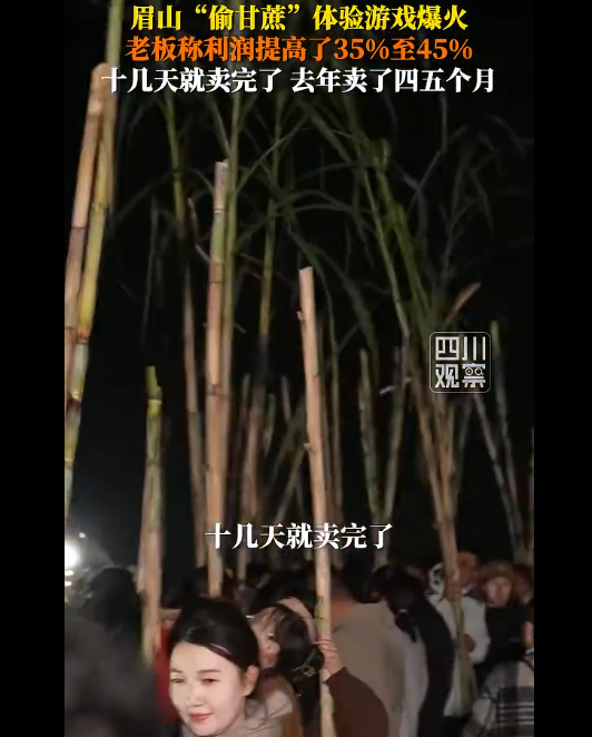 眉山"偷甘蔗"体验游戏爆火,老板称利润提高了35%至45%,十几天就卖完了,去年卖了四五个月。