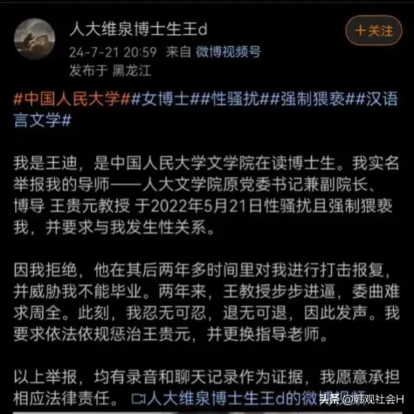 这下好了,把女博士王迪逼的走投无路了,人家当然就豁了出去。希望查查王贵元是否有前科,对这样的教授应该让他呆在监狱,以警示高校那些不良教授,不要打学生的歪主意。