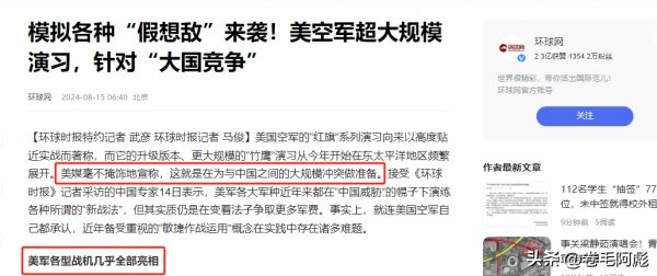 而对于几乎与"环太平洋"联合军演同时落下帷幕的"竹鹰24-3"空中演习,相关美媒更是毫不掩饰的宣称,美军就是在为与中国之间的大规模冲突做准备。