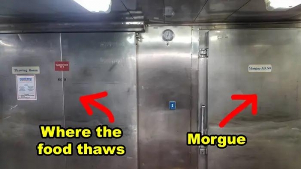 首先要明确一点,游轮上都会设置专有的"停尸房"。