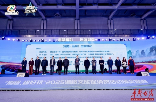 活动发布了《湘超·延续》主题倡议。湖南将以"湘超"为重要抓手,完善"观赛+旅游"服务标准体系,持续开发具有湖湘文化标识的主题文旅产品体系,拓展多元消费场景,推动体育赛事与文旅产业向体系化、标准化、常态化深度融合。