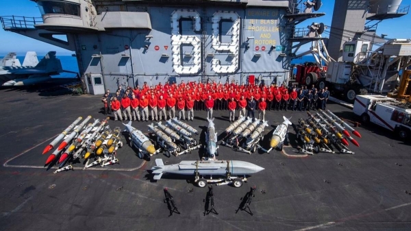 当然,这两艘航母上还带有共8支F/A-18E/F舰载机中队和2支EA-18G电子战机中队,因此又可以额外为以色列防空网提供大量空基的导弹拦截力量。而这百架左右的舰载战斗机,按照每架最多可以挂载9枚空空导弹(5枚AIM-120和4枚AIM-9X)计算,那就能在以色列上空或周边数百公里的空域里,筑起一道由约900枚空空导弹组成的"叹息之墙"!并且这种战法,已经通过艾森豪威尔号航母在红海与胡塞武装的大量实战,被证实的确很有效。