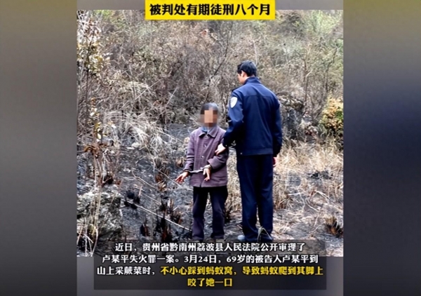 这事闹的,本来就是去采个蕨菜,估计这位阿姨也进山了好多年了,经验丰富,怎么就这么不小心呢。卢某自己也表示真的没想到:"我只是想报复一下爬到我脚上咬我的蚂蚁,万万没想到我的冲动行为会引发山火,我真的很后悔!我知道自己错了!"