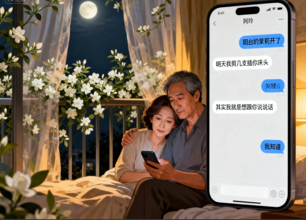 想起同事阿玲的故事。她和丈夫曾冷战半年,聊天记录干净得像新号。直到有天她发"阳台的茉莉开了",他回"明天我剪几支插你床头"。就这一句,两人聊到凌晨,从花聊到孩子,从工作聊到年轻时的糗事,最后她说"其实我就是想跟你说说话",他回"我知道"。