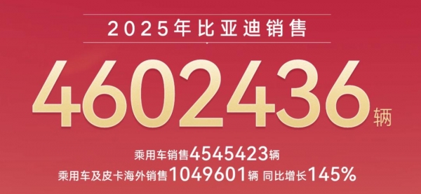 比亚迪的数据咱们先拎出来看,2025年它全球总销量是460.24万辆,其中纯电225.67万辆,插混228.87万辆。