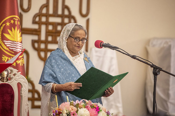 2024年1月人盟在没有对手的情况下再次胜选、连续执政15年,哈西娜则开启第5个总理任期,以累计任职20年成为全世界在位时间最长的女性政府首脑。2024年8月5日,抗议浪潮中失去军方支持的哈西娜被迫辞职、远走印度;次年5月10日,孟临时政府依据《反恐怖主义法》取消人盟注册资格、禁止政党活动,几十年的两党格局就此打破。