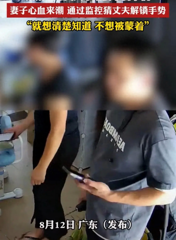 8月12日 ,广东。结婚十年丈夫不给妻子看手机,妻子心血来潮通过监控猜丈夫解锁手势。网友说,尊重他人的隐私。