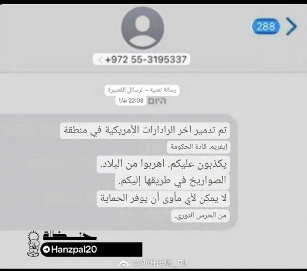 日前有媒体公布了以色列人收到伊朗革命卫队的短信,内容如下: