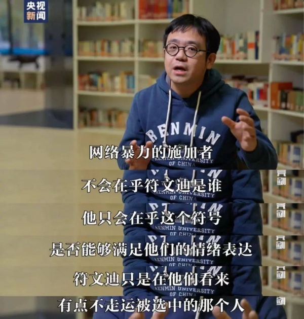 董晨宇是中国人民大学新闻学院教师,多年研究互联网传播相关的课题。在他看来,一些人仅仅看了短短两分钟视频,就开始评判符文迪,失真是必然的。其中更有一部分人,只是把符文迪当成一个假想的符号,来宣泄自己的情绪。