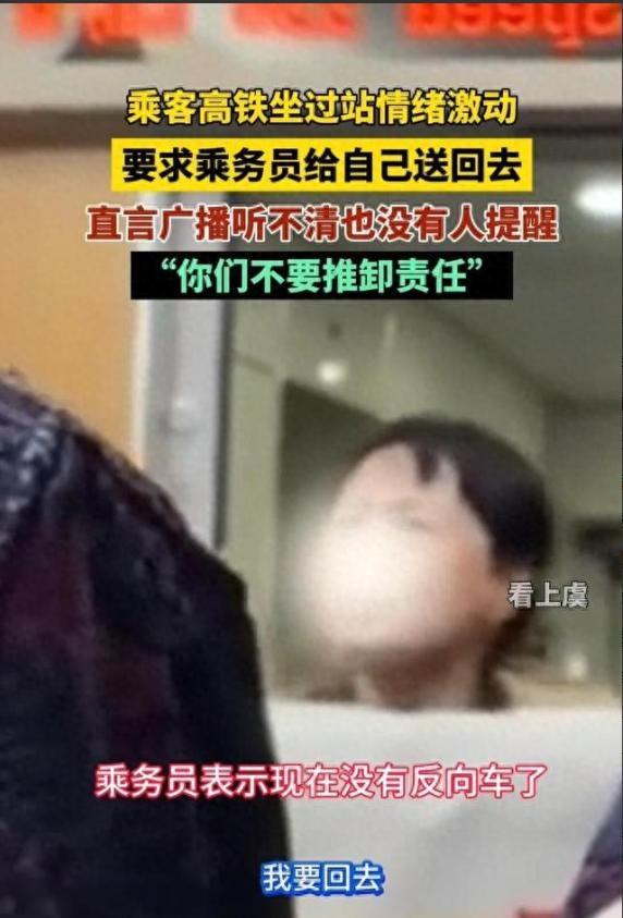 坐过高铁动车的朋友都知道,列车每到一个站广播都会反复提醒乘客,而且到站时间也很精准,如果你不是在睡觉、玩手机的话都不至于会坐过站, 如果真的坐过站了,那只能说是乘客自己的问题,怨不得别人,可有的人总是喜欢把责任归咎到别人身上,与其在纠缠上浪费时间也不想办法补救。