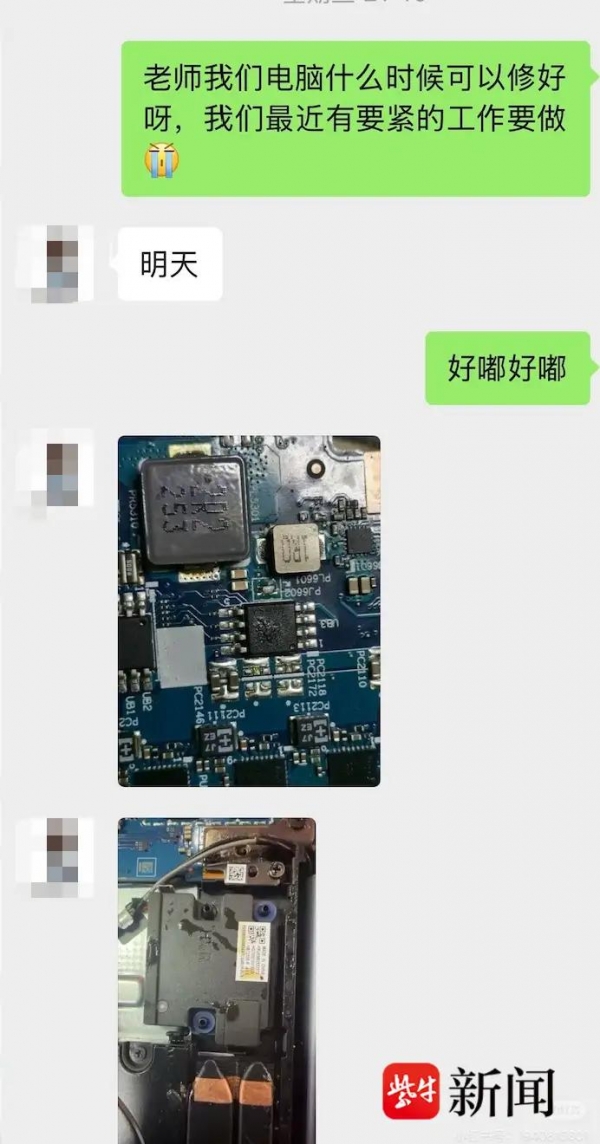 她打电话过去,客服完全不提价格,只要了她手机号,说安排师傅联系。师傅来了,取走电脑,收了200块定金,说"次日修好"。取走当晚,师傅发来一堆拆机照片,说什么"升压芯片坏了""内存坏了""声卡坏了""硬盘要数据恢复"。小王和同学一个学生一个,哪里懂这些?听师傅说得头头是道,只能同意修。