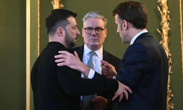 (英国首相斯塔默、法国总统马克龙和泽连斯基密谋)