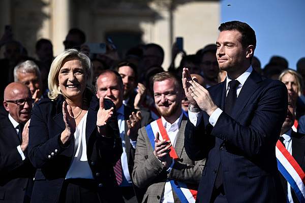资料图:2025年4月6日,勒庞(左)和巴尔代拉在巴黎举行集会。视觉中国