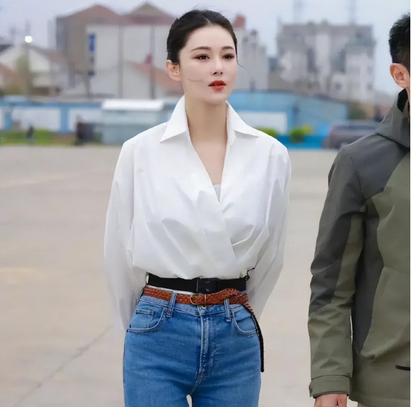 屏幕前的我,吃着西瓜,眼睛却紧紧跟着镜头走,心想这得是多少女生梦寐以求的身材啊!当时她穿着一件简约却不失风情的白衬衫,搭配蓝色的紧身牛仔裤,重点是那条皮带,轻轻一勒,简直是神来之笔,把那腰线勾勒得,用惊为天人来形容也不为过。