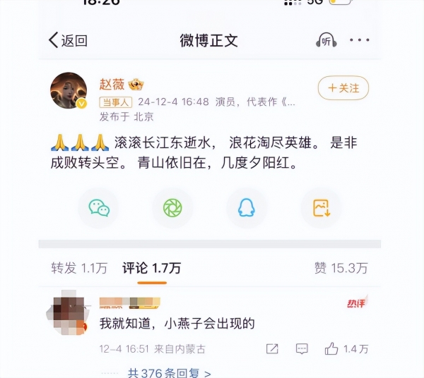 除此之外,小燕子赵薇也发文悼念了琼瑶,这是赵薇时隔三年第一次发微博,可见琼瑶在赵薇心中的分量。