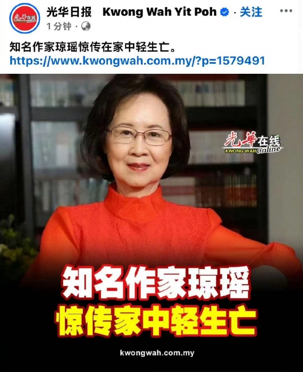 秘书看到后悲痛不已,立即拨打了医院的电话,但是琼瑶最终还是离开了我们。