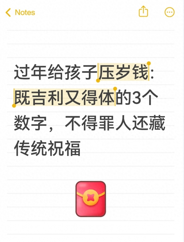 2026年是丙午马年,生肖马象征着奔腾进取、马到成功,给压岁钱的讲究也得贴合这份"龙马精神"。其实压岁钱的核心从来不是金额多少,而是藏在里面的祝福和心意。今天就给大家拆解3个既吉利又得体的核心数字,不管是给直系亲属的孩子,还是朋友、同事、邻里的晚辈,用这几个数都不踩雷、不得罪人,还能把传统祝福送进心坎里。同时再分享几个容易被忽略的细节和场景化用法,让你发压岁钱既体面又省心,还能让年味更浓。