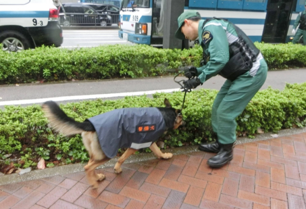 特朗普访日前,一只警犬在东京嗅探爆炸物。 《日本时报》