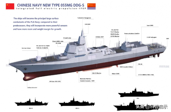 这款下一代驱逐舰方案在《舰船知识》官方账号公布后,给我们带来不小的冲击和震撼!其基于055大驱为蓝本"设计"而来的,将福建舰的综合电力系统引入其中,使其能装备更多的新式武器,马伟明院士提出集成各类新式武器的"超级战舰"有望从设想变为现实。该舰长约200米、舰宽25米,满载排水量达到了20000吨,并且该舰还采用综合全电动力推进系统以及吊舱式推进器。而这款战舰一旦出现,将会颠覆现代海战,让中国彻底在海军领域取得领先地位。