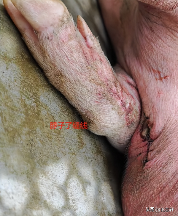 这头小猪的脖子上竟然有一道明显的伤痕,而且还缝过针!这个发现让现场的气氛瞬间变得紧张起来。
