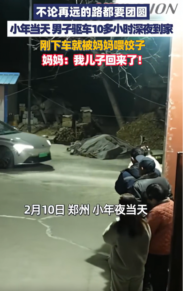 河南郑州,一男子小年夜开车回家,等他到家时都已经是深夜,本以为家人早就已经睡了,结果却发现一家人早就站在门口等他,甚至人还没走进家门,妈妈就端着饺子来投喂,那一刻途中所有的疲惫全都消失了