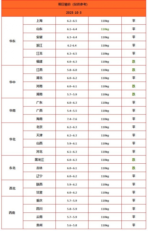 时光荏苒,10月伊始,近期,国内生猪市场,猪价受供应过剩压力较大,而需求承接不及预期,国庆以及中秋前,下游市场备货表现一般,生猪市场面临供过于求的局面,猪价重心下移,南北多地标猪报价跌破6元/斤,猪价呈现"旺季不旺"的局面!如今,双节到来,猪价并未如约上涨,市场表现延续惨淡的局面,那么,猪价前景如何,具体分析如下:
