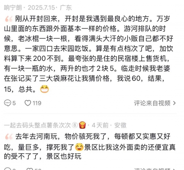 还有1.5元的矿泉水,3块钱的雪碧……记者查询发现,网上有不少外地游客被河南一些景区物价给惊到了,直呼太良心。